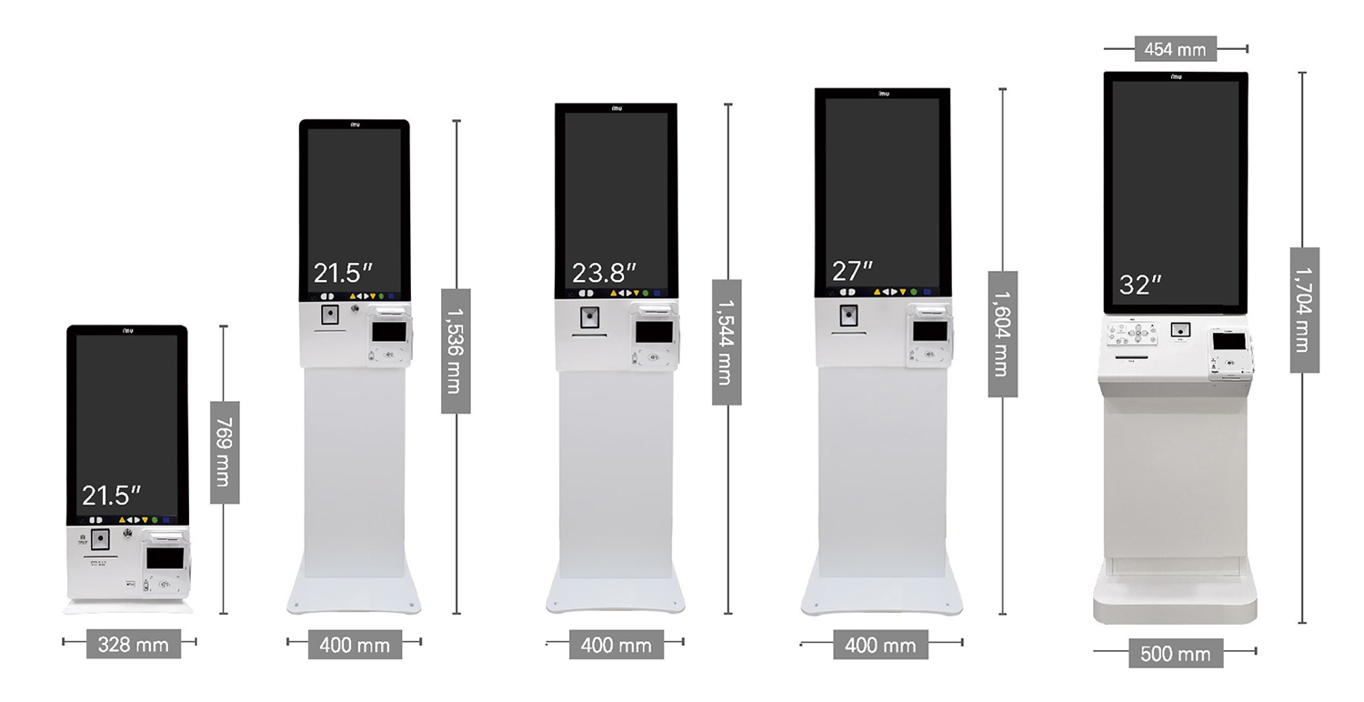 21.5” FHD 화면의 측면 패널 두께가 44mm인 슬림형 키오스크입니다.