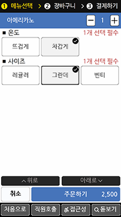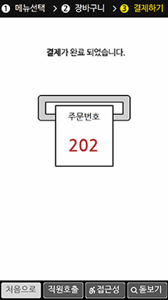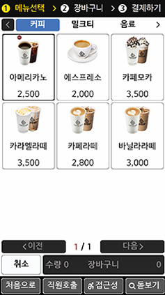 - 메뉴 이미지를 보면서 주문 > 결제 > 완료