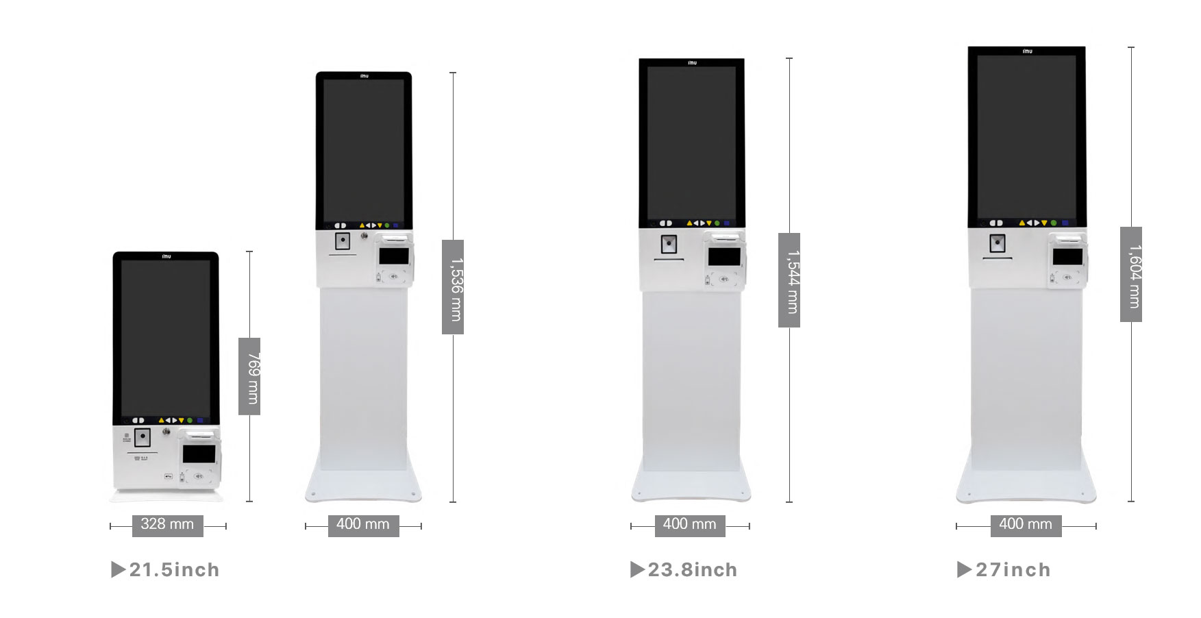 21.5” FHD 화면의 측면 패널 두께가 44mm인 슬림형 키오스크입니다.