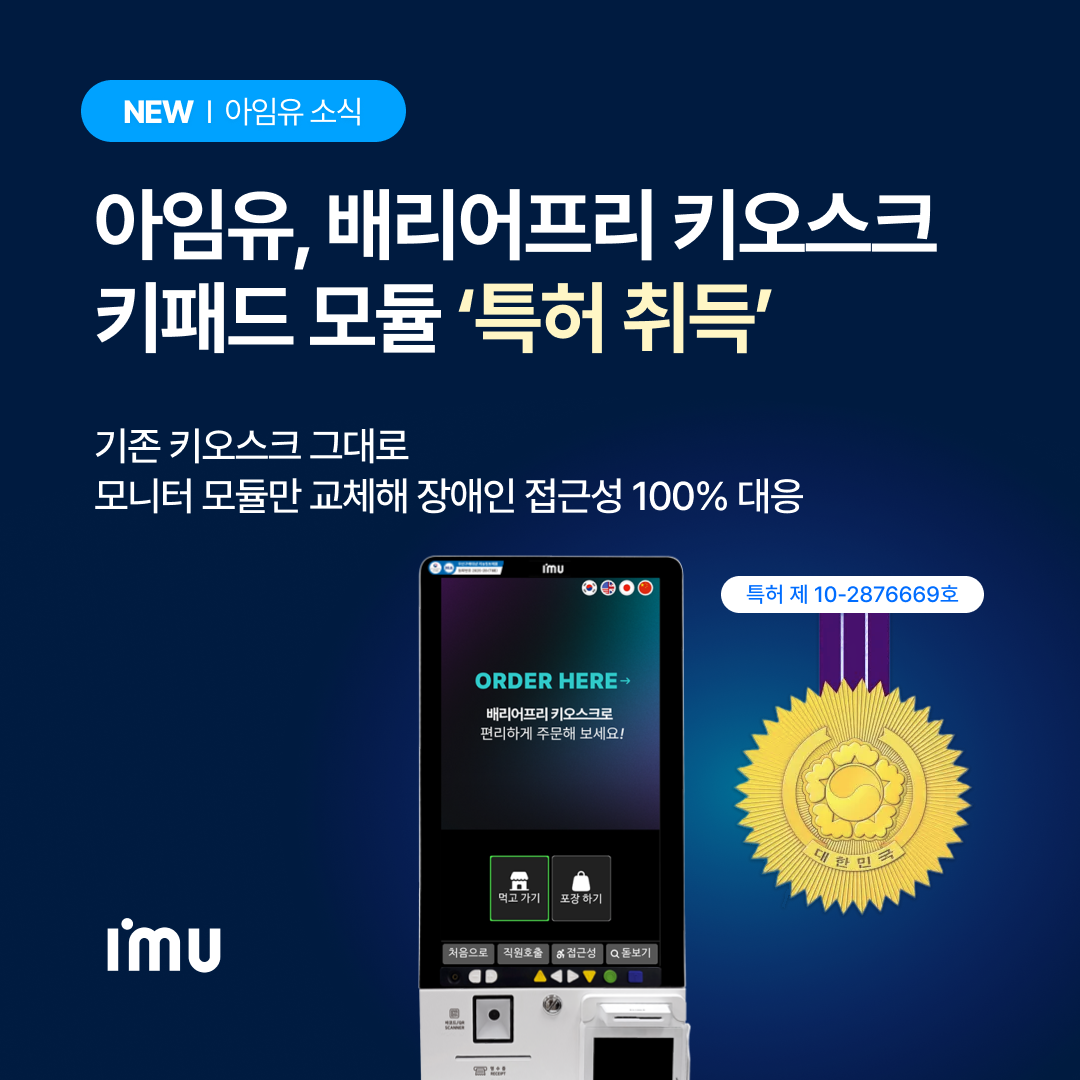 아임유, 배리어프리 키오스크 키패드 모듈 ‘특허 취득’ 🎉