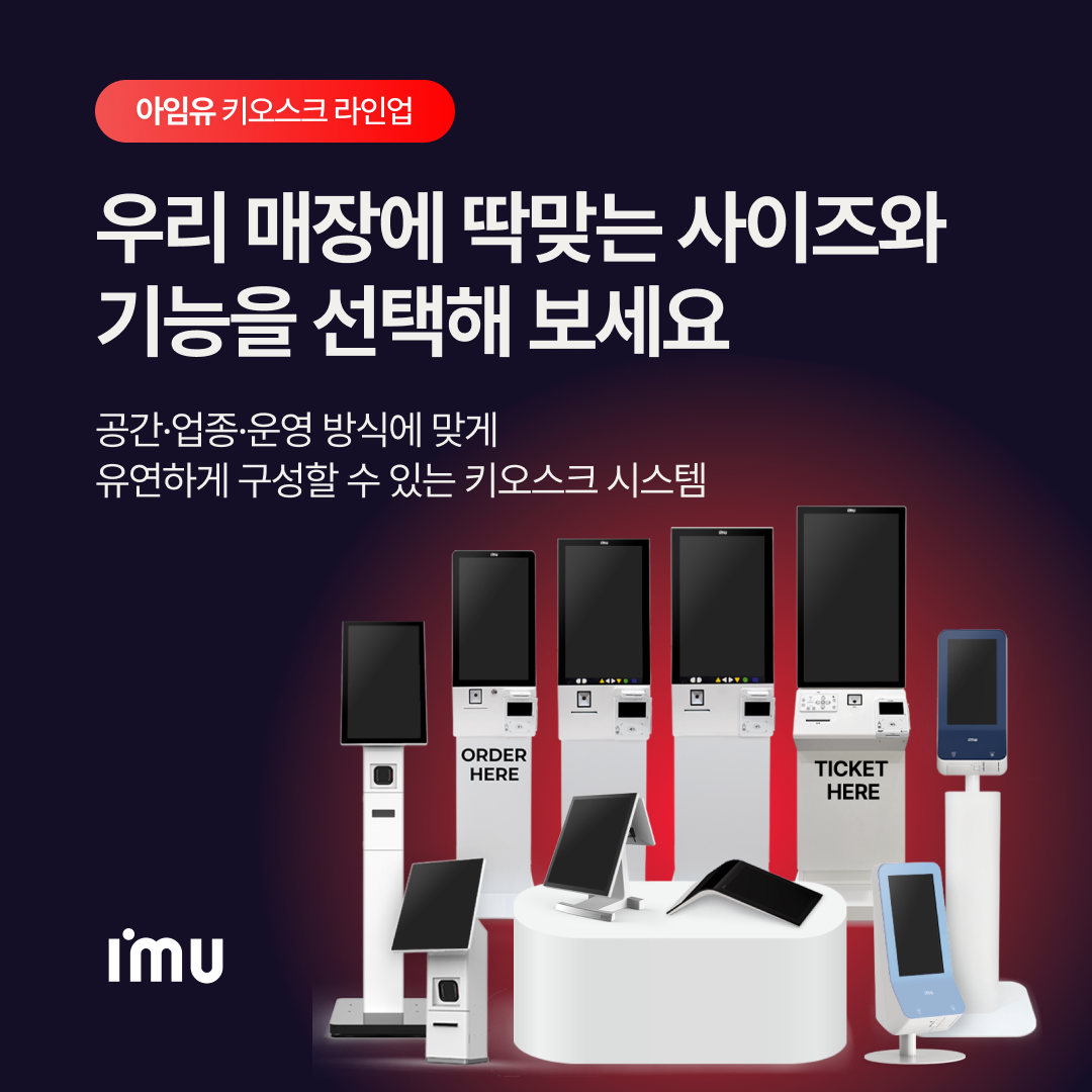 우리 매장에는 어떤 키오스크 사이즈가 어울릴까요?매장 동선, 업종, 설치 위치에 따라 필요한 화면 크기도 조금씩 달라집니다아임유 키오스크는 8″ 테이블형부터 32″ 대형 화면까지다양한 사이즈의 키오스크 라인업이 준비되어 있어우리 매장 상황에 맞게 필요한 화면 크기와 모듈을 골라 구성하실 수 있습니다우리 매장 동선·평수·업종만 알려주시면딱 맞는 사이즈 + 구성으로 제안해 드릴게요😊☎️상담문의 : 1566-9209☎️#아임유 #아임유키오스크 #키오스크라인업 #셀프키오스크 #SCO #셀프계산대 #카페키오스크 #식당키오스크 #매표키오스크 #유통매장