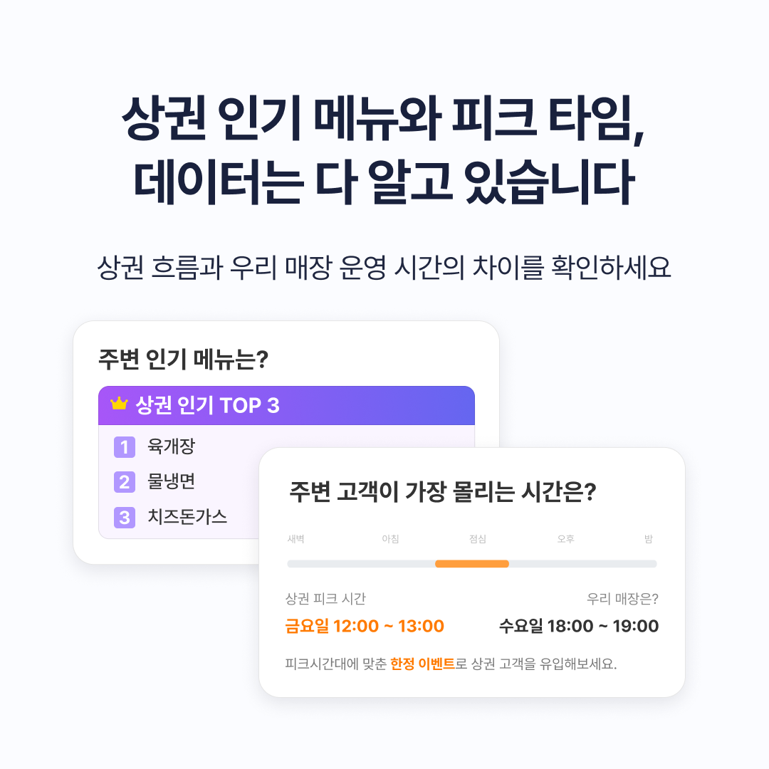 상권 인기 메뉴·시간대까지 빠르게 파악해보세요.