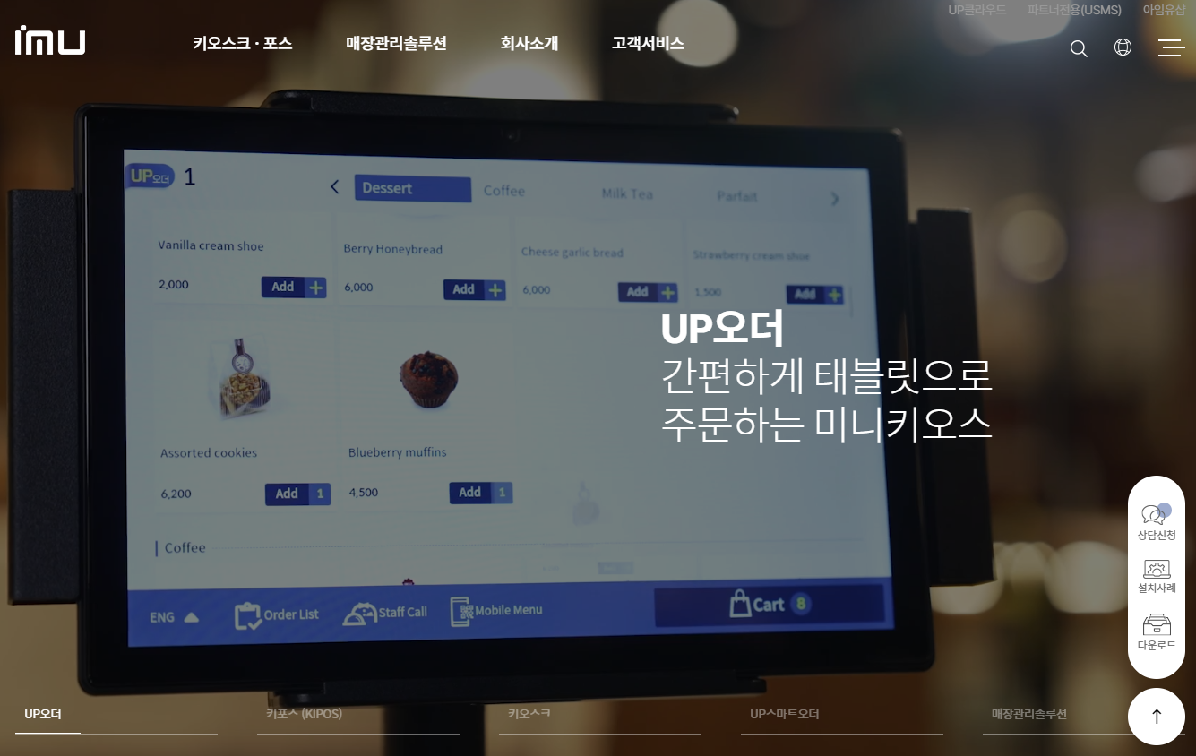 이밖에도 하드웨어 브랜드(P2C)와 소프트웨어 브랜드(UP솔루션)을 메뉴로 구성하여 고객 활용도를 높이고,